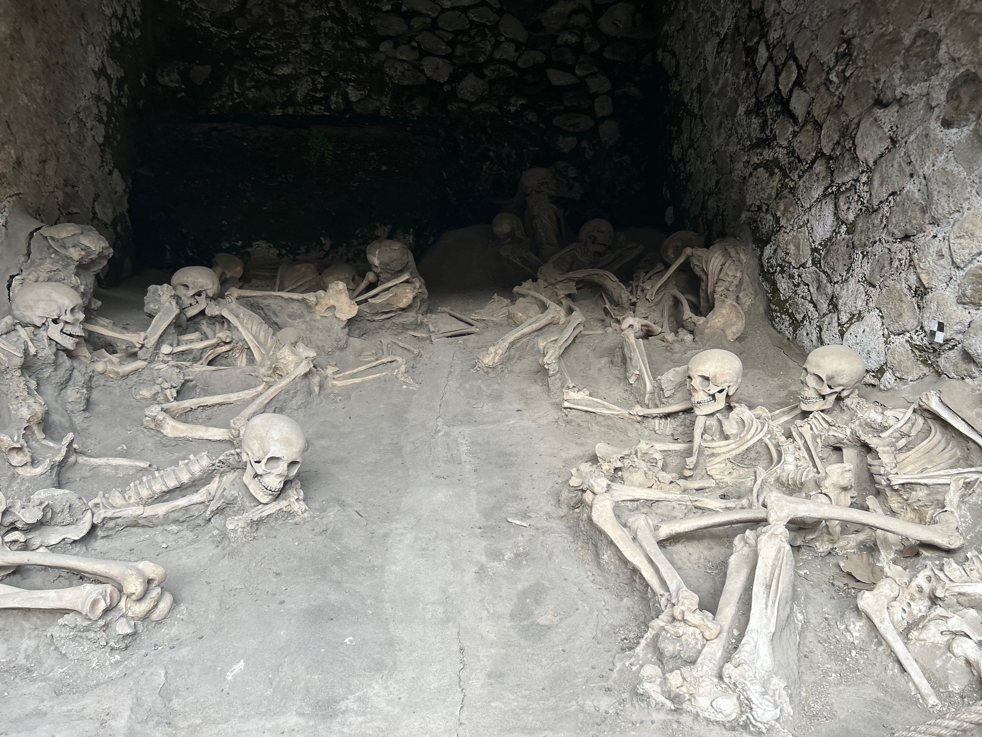 “Stable isotope analysis of bone samples of 17 individuals (11 men and 6 women) revealed,” Sirano explained, “that the men ate 1.6 times more fish than women, who consumed more meat, eggs, and dairy products. Tooth decay was prevalent because of the large amount of carbohydrates in their diets as was brucellosis, a bacteria found in unpasteurized milk so also in cheese. From this analysis we also know what diseases and broken bones the skeletons had before the eruption and those incurred at death. It is still possible to see many of the skeletons still in the “boat houses” at Herculaneum’s Archeological Park.”